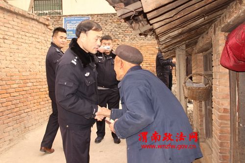 为了让辖区困难群众度过一个平安祥和的春节,2014年1月8日,华县公安局城关派出所民警带着棉衣、棉被、米、面等生活物品,对辖区张场村、大街村的20户贫困家庭进行了走访慰问,让困难群众切实感受到公安机关的关怀与温暖。