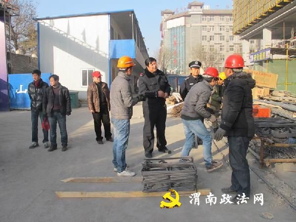 进入冬季,“两抢一盗”案件易发,为此,新城派出所专门在天惠亿家超市门口和禹甸园设立法制宣传点,向群众发放宣传资料、服务联系卡,耐心向群众宣传法律 知识,悉心讲解防范技巧,提醒群众增强防范意识,推动联动联防,共建平安韩城。同时,在所领导的带领下,民警们进入工地,对工地的安全防范工作进行检查, 落实人防、技防、物防措施,最大限度的减少安全隐患,大家还详细的询问查看了农民工的住宿环境、饮食条件,对农民工关心的薪资问题,和企业负责人面对面的 进行沟通,确保农民工安心工作,放心回家过年。