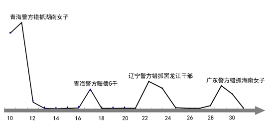 17日,湖南被错抓女子与青海警方未能达成赔偿协议的消息传出后,网友大多认为5000元赔偿偏低,舆情小幅回温。第二波舆情真正发生在辽宁警方错抓黑龙江干部的消息被曝出之后,绝大多数报道将两起案例放在同一篇报道中,引发联想和思考,舆情逐渐形成分化。一部分声音围绕两起案例的警方办事差异展开,如“@新京报”发表“#快评#”,称“同是抓错人,赔偿标准为何不一?警察的办事效率和赔偿标准为何如此悬殊呢?难道因为他们身份不同?办事标准如此随意,不抓错人才怪。”另一部分网民则在讨论抓错人背后的“深层问题”,如网络通缉的执法程序、错抓的追责机制和公民个人信息保护等。