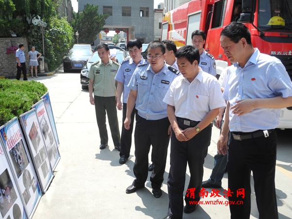 华阴市市委书记卢发兴(右二)、政法委书记李成民(右一)现场指导禁毒工作。
