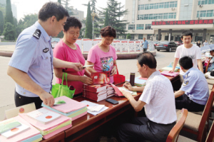 活动现场,工作人员通过宣讲、发放宣传册、展示禁毒宣传展板等形式,向来自实验小学的300多名小学生和现场群众宣传毒品的种类、来源与危害。 韩城籍著名作家程清彦应邀参加活动,现场签名赠送他编著的以诗歌形式宣传禁毒戒毒普及读物《禁毒戒毒歌》,普及禁毒知识,告诫人们:珍爱生命,远离毒品。 图为活动现场,程清彦正在为群众签名赠送他编著的《禁毒戒毒歌》,宣传禁毒戒毒知识。
