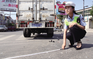 临渭交警大队成立以来事故预防处理中队首个出现场的女民警