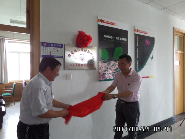 (市司法局副局长王进宏(左) 市检察院副检察长梁百炼为工作站揭牌)
