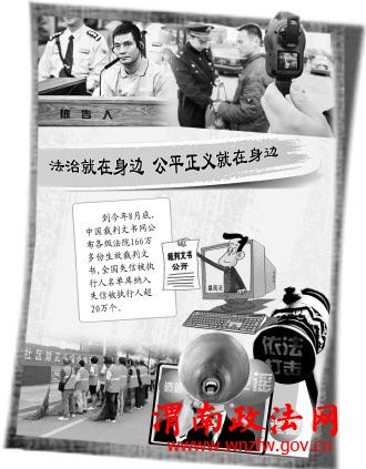 各级政法机关充分运用现代信息技术,深入推进审务、检务、警务、狱务公开,增强司法透明度。最高法全面推进审判流程公开、裁判文书公开、执行信息公开三大平台建设,将司法公开的内容从审判公开延伸到立案、庭审、执行、听证、文书、审务等各个方面。到今年8月底,中国裁判文书网公布各级法院166万多份生效裁判文书,全国失信被执行人名单库纳入失信被执行人超20万个。