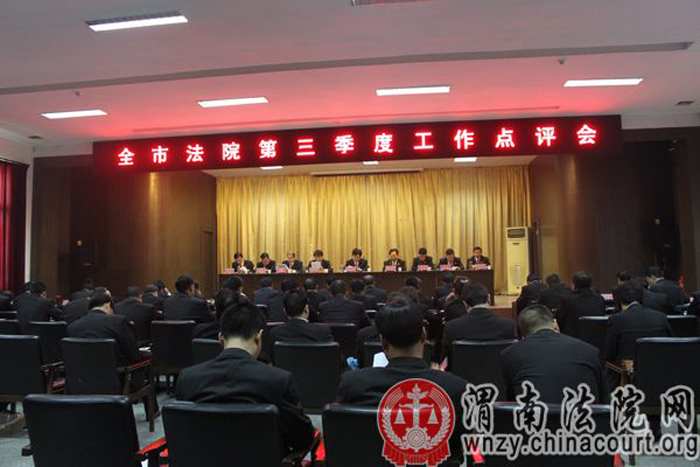 10月20日下午,渭南中院召开全市法院第三季度工作讲评会。会议认真传达学习了习近平总书记在党的群众路线教育实践活动总结大会上的重要讲话精神,分析总结第三季度各项主要工作中存在的问题,安排部署第四季度工作。该院班子成员、各部门负责人、各基层法院院长、纪检组长、政工科长等近80余人参加了会议。