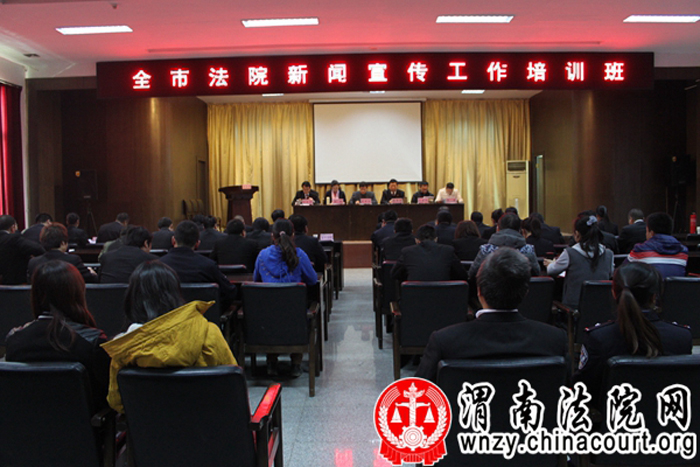 渭南中院组织这次培训暨新闻宣传工作例会,是为了深入学习贯彻党的十八届四中全会精神,认真贯彻落实省法院新闻宣传工作电视电话会议精神,全面提升全市法院新闻宣传、新媒体管理应用、舆情应对与处置、网络庭审直播等工作的能力和水平,按照“培训提高能力,能力推动工作,工作促进发展”的思路,邀请了省法院宣教处处长、《人民法院报》驻陕西记者站站长贾明会;省法院网络新闻中心副主任张娅;渭南日报法制周刊栏目主任王咸阳;省法院网络新闻中心干部杨繁四名同志,分别就新闻稿件采访与写作、法院微博应用、网站管理、舆情应对、新闻宣传摄影技巧等方面进行授课,老师的讲授紧扣工作主题,理论博大精深,内容宽泛广袤,技巧管用实在,精彩生动,引人入胜,集理论性、指导性和操作性于一体,与会同志互动交流,探讨提高,享受到了一堂丰富的知识盛宴。