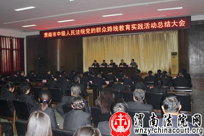 11月19日下午,渭南中院召开党的群众路线教育实践活动总结大会,全面总结党的群众路线教育实践活动开展情况,并对当前和今后一个时期巩固拓展活动成果和加强党建工作进行再部署。渭南中院领导班子成员及全体党员干部共计120余人参加了会议。市委第十督导组组长王鹰林出席大会并讲话,院党组成员、政治部主任张振国主持会议。