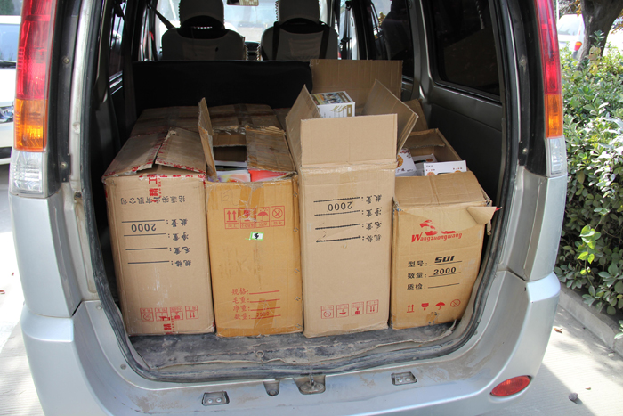 11月19日凌晨4时30分左右,蒲城巡特警大队便衣中队民警巡逻至县城重泉路南段时发现一辆车号为陕EXXX98的五菱面包车看见前方有警察立即掉头,多年的破案经验让民警觉察到有些不对劲,比较可疑,随即上前盘问并对车辆进行检查,一查让竟让民警大吃一惊,看似不起眼的面包车内竟装有8箱(约16000个)一次性打火机,在询问其运输手续及货物来源时,两男子支支吾吾,民警立即将人和车带回大队进一步审查。经审讯,尚某不具备易燃易爆危险品运输和操作资质,其交代打火机从南塬某市场一库房内所装,该库房即生产窝点。民警立即赶往现场,一举捣毁该黑窝点。发现民房内已生产成品约30余箱,大约六万个打火机,半成品若干及生产设备,室内有灌装液化气装置,没有安全隔离设备,液化气极易爆燃,一旦引发事故,后果不堪设想。