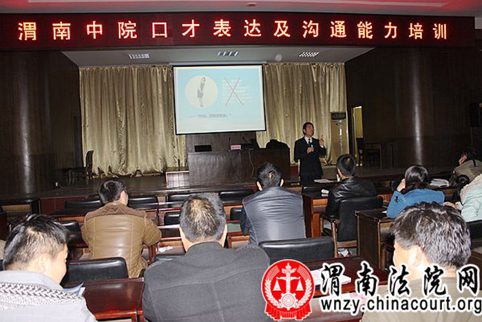 为有效提升法官干警的口才表达及沟通能力,进一步适应新形势下审判工作需要,12月3日下午,渭南中院邀请渭南师范学院对口才与沟通能力有着丰富教学经验的韩宏刚教授为全体法官干警作了一次精彩的培训。渭南中院60余名法官干警聆听了讲座,获益匪浅。
