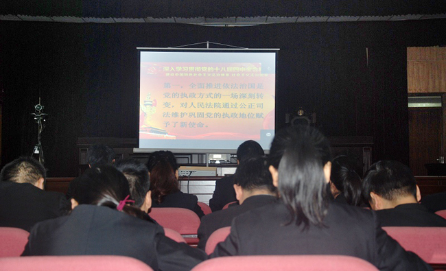 12月5日上午,临渭区法院组织全体中层以上干部在视频会议室收听收看省高院举办的学习贯彻党的十八届四中全会精神宣讲报告会。现场聆听省法院党组书记、院长阎庆文作的专题宣讲报告。