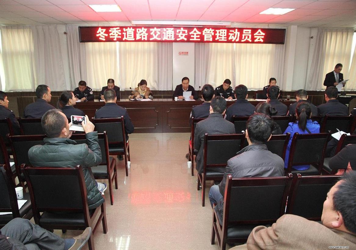 11月11日,临渭大队召开冬季道路交通安全管理动员会,区安监局、区交通局、区运管所及辖区35家客货运企业负责人参加会议。会议通报了2014年临渭辖区客货运企业交通事故情况和交通违法情况,并组织学习了大队冬季道路交通安全管理工作方案。平顺客运公司、前进危化品运输公司负责人分别作了检查和表态发言。