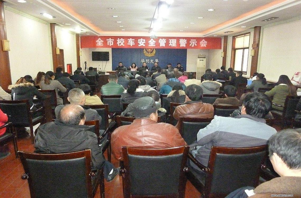 11月28日,华阴大队会同安监局、教育局、交通局联合召开了全市校车安全警示会议全市34所幼儿园负责人、校车驾驶人及幼儿教师代表共计110余人参加了会议。会议通报了山东蓬莱、湖南湘潭校车重大交通事故案例,以及对近期非法接送学生的车辆驾驶人及涉事学校的处理意见,再次学习了《陕西省实施〈校车安全管理条例〉办法》;大队主管领导与34所学校负责人逐一签订了《校车道路交通安全责任书》。