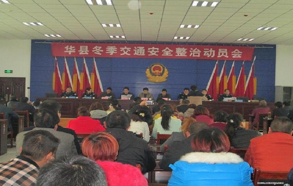 11月28日,华县人民政府在华县大队召开全县冬季交通安全整治动员会,安监局、教育局、交通局,运输企业、驾校及52所幼儿园负责人负责人参加会议。会议组织学习了冬季道路交通专项整治工作方案,通报了今年以来近期全国发生的重特大交通事故情况和华县辖区事故情况及安全隐患排查情况。县委常委、常务副县长孙坤刚提出了具体要求。
