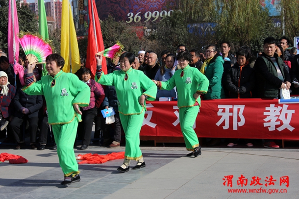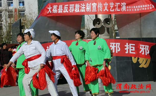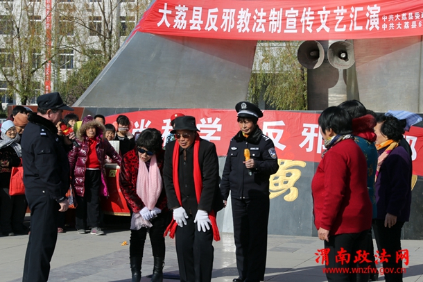 12月12日,大荔县委政法委610办在同州广场组织举办的“反邪教”法制宣传演出,表演的反邪教快板、小品等文艺节目让上千名群众受到深刻的教育。