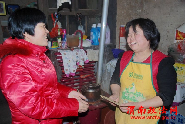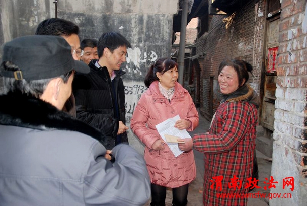 今年以来,为了进一步解决城市困难群众生活中的实际困难,最大限度地保障和改善困难群众的基本生活,临渭区法院按照区委的安排,每名班子成员固定联系一名困难群众,12月30日在元旦佳节即将到来之际,8名班子成员分别在解放办事处书记靳军、主任张中锋以及相关社区工作人员的陪同下,带着浓浓的关切之情,深入包联点解放街道新世纪、印机社区慰问走访困难群众,为他们送去节日慰问金,并鼓励困难群众,发扬自力更生的精神,坚定生活信念,克服生活困难,逐步的改善生活状况。