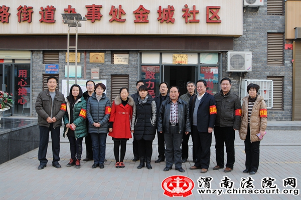 为进一步巩固党的群众路线教育实践活动成果,密切党群干群关系,1月8日下午,渭南中院组织十余名在职党员代表,佩戴红袖章到开发区金城社区报到登记,并将根据社区需要及自己的特长和爱好,在社区为群众开展各项服务,尤其将在法律咨询、法律援助、社区文化建设上发挥该院党员志愿者的特长,为今年进一步开展红袖章志愿服务活动打下良好的基础。