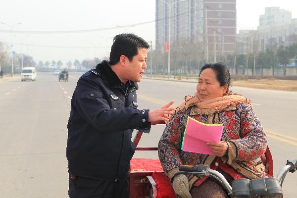 会后,辛市派出所所长带领民警和接警员一起来到街道向过路群众、沿街店面发放宣传单,以此提升群众安全防范意识和能力,让群众切实感受到110就在身边。