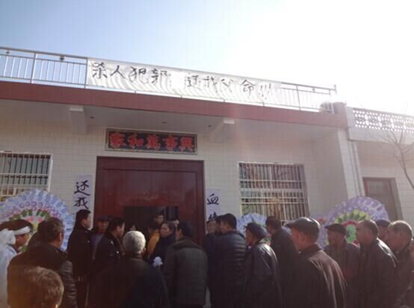 2015年1月7日上午9时30分,曹村派出所接群众报警称:富平县曹村镇白庙管区郭家村三组郭某家有人闹事。接警后,民警迅速赶往现场。赶到现场时,发现郭某的家门口已经聚集了二百余人吵吵嚷嚷,即将发生肢体冲突。民警赶紧上前制止,并及时疏散围观群众。后经民警了解,原来是因为郭某的儿子在临潼区徐杨乡徐杨村发生交通事故致文某死亡。但是双方却因交通事故赔偿问题协商不下,文某的家属一行四十多人披麻戴孝来到郭某家设灵堂、摆花圈,并与当地村民发生争执。由于双方情绪都非常激动,眼看就要转化为肢体冲突,幸好民警及时赶到予以制止。