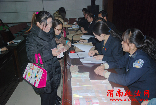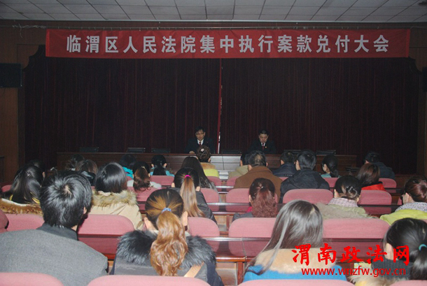 渭南政法网(特约通讯员 周东峰 刘娟洁)为了切实维护申请执行人的合法权益,进一步推动涉民生案件集中执行专项活动的继续深入开展,2015年1月15日临渭区人民法院组织召开集中执行兑付大会。此次兑付大会是在前一阶段兑付81人50万元的基础上,再次向78名申请执行人发放执行案款80万余元,受到了申请执行人的一致好评。