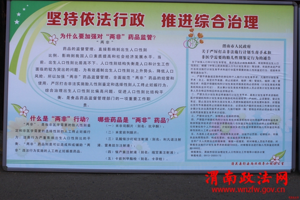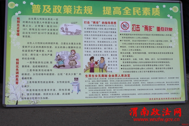 渭南政法网(特约通讯员 汤朗武)1月22日—23日,潼关县开展“打击两非”宣传教育活动。计生、卫生、公安、药监、妇联、工商局抽调人员,联合开展打击利用超声技术和其它手段进行非医学需要的胎儿性别鉴定和选择性别的人工终止妊娠行为(以下简称“两非”) 宣传教育活动。
