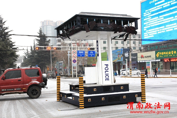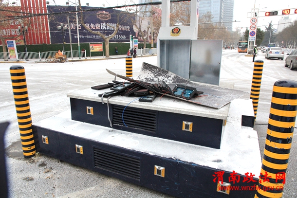 1月28日,凌晨一点二十分左右,雪花纷飞,路面结冰,室外零下3度,渭南市区国贸十字,一辆白色福特小轿车以迅雷不及掩耳之势撞向交警岗亭…
