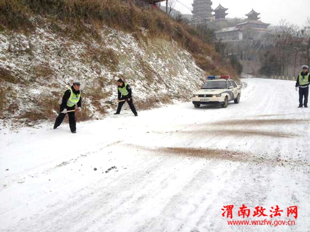 1月27日,渭南市突降大雪,给群众出行带来安全隐患。为了加强雨雪天气交通安全预警,临渭交警大队组织全体民警冒风雪、顶严寒,上路执勤,采取流动巡逻与固定指挥相结合的方式,加大对主要路口、路段的执勤力度和密度,在各路段、执勤点上,民警们提醒过往车辆驾驶人减速慢行,注意避让行人和非机动车,全力以赴确保平安畅通。