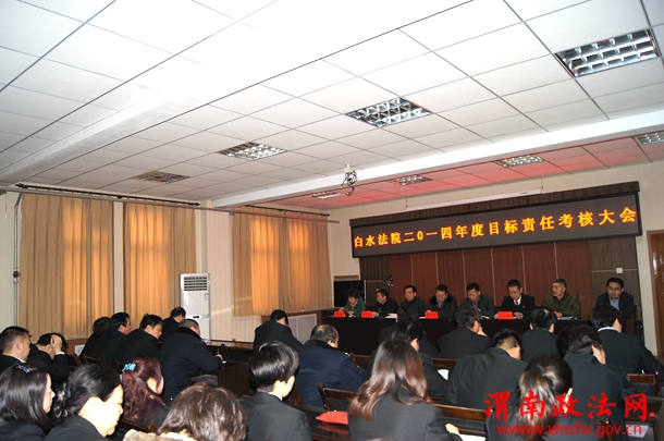 在考核大会上,吕升学副院长做了重要讲话:一是要充分认识目标责任考核的重要意义。二是要严肃认真地对待这次考核和测评工作,本着负责的态度,客观、慎重地填好测评表。三是考核组将会按照公平、公正的原则,严格评判,不徇私情,为市中院党组评价各基层法院工作提供真实、客观的依据。按照考核程序,白水法院向考核组汇报了2014年度目标责任制工作完成情况,考核组进行了民主测评。会议由白水法院党组书记、院长古晓主持。