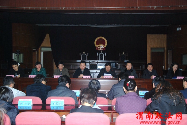 渭南政法网(特约通讯员 周东峰 郝毅伟)1月30日上午,第三考核组在市中院党组成员、政治部主任张振国的带领下一行7人对临渭法院2014年度各项工作进行全面考核,并召开了考核大会。会议由临渭法院党组书记、院长宋建国主持。