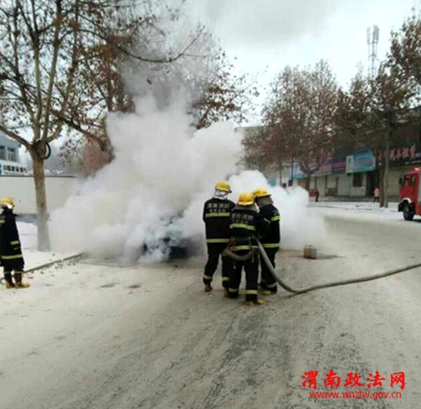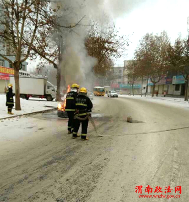 1月29日早,在西潼路与解放路十字东300米处有一辆汽车自燃了。