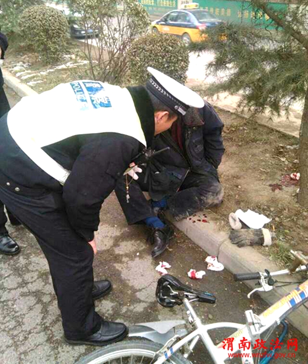 1月31日,临渭交警大队闫村中队民警在火车站执勤过程中,发现东边公交专用道下坡50米处,地面上倒着一个人和一辆自行车,头破血流,民警上前查看后,得知,他是因为饮酒过量骑自行车导致摔倒,联系120后,民警将当事人送至医院治疗。