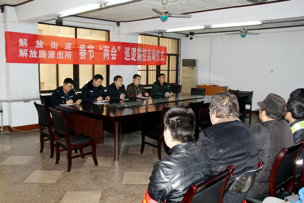 解放街道张中锋主任强调:各个社区要迅速行动起来,扎实安排部署巡逻防范,把巡防工作真正落到实处,同时,做好安全防范宣传,提升辖区群众的自防意识,灵通信息,做好和派出所的沟通协调,形成巡逻防控的合力,全力挤压犯罪空间,确保辖区群众欢度新春佳节,确保全国“两会”顺利召开。