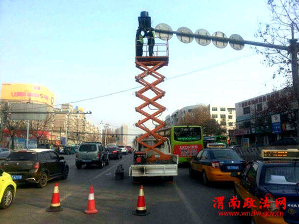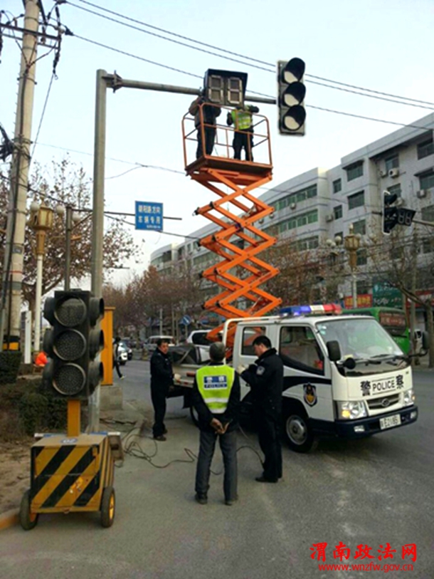 为提高路口通行能力,保障群众出行安全,临渭交警大队交管中队工程办重点对已使用了20余年失修的东风大街渭清路口、解放路口,朝阳大街解放路口、五岔路口的信号灯进行更新。