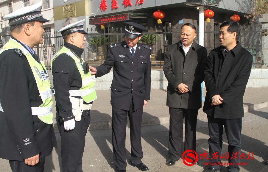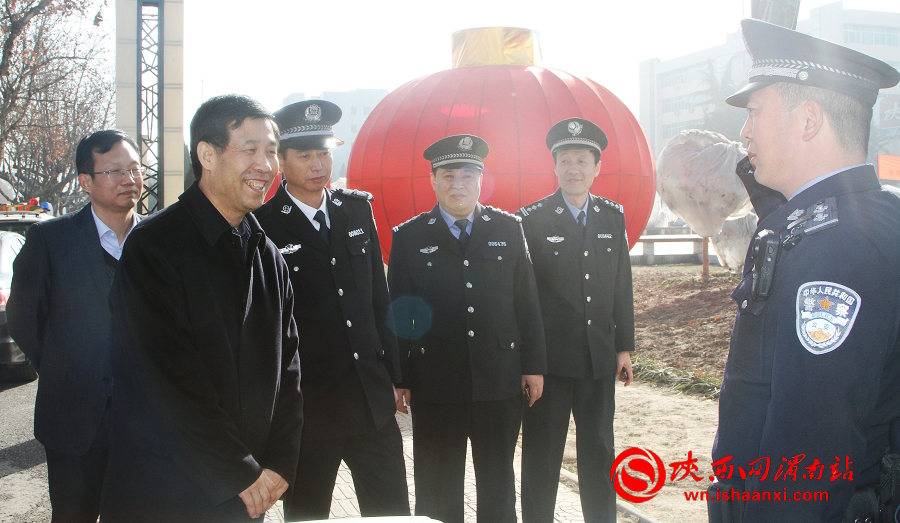 渭南政法网(韩城政法)春节临近,2月16日上午,韩城市委书记杨炳拓到韩城市公安局交管大队新城中队执勤岗、警务平台车、巡特警大队看望慰问一线公安民警。市委常委、政法委书记张喜,韩城市公安局局长沈军,政委薛水镜等陪同慰问。