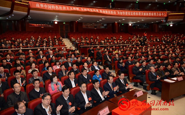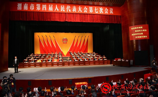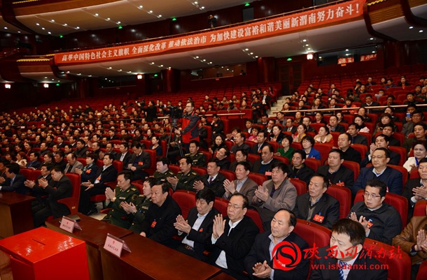 李明远以全票当选成为渭南市人民政府市长,出席市四届七次闭幕会的人大代表鼓掌表示祝贺。记者杨青山 张亨特摄