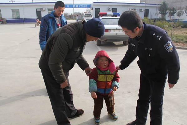 2015年3月5日下午14时03分,富平县公安局美原派出所接到群众报警称:在自家麦田旁捡到一个2岁左右的小男孩。民警立即驱车直奔向事发地点。到达现场后,一名姓李的女子告诉民警:当时她准备去自家麦田灌溉,走到路边时看见这个满身是泥小男孩在麦田旁边哭喊着要回家,但讲述不清家庭地址及父母姓名,最后就把小男孩带回自己家了。了解情况后,民警从村民手里抱过小男孩。由于小男孩年龄太小,无法提供其家人的相关信息,于是民警抱着小男孩到处寻找家人,可是大家都不认识小男孩,几经努力,仍未找到其家人。考虑到小男孩在外时间长可能饿了,于是民警把小孩带回所里为其找来食物,等孩子吃饱后继续带领小孩通过多种渠道寻找其亲人。