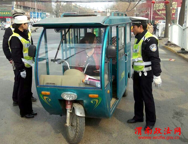 【整秩序保畅通 严查各类交通违法不手软】临渭交警大队四中队为缓解雾霾天气,针对节后出现的非行驶期间拖拉机拉货进城等影响城市空气环境的违法行为,重拳出击、严格执法,有效的净化了城市空气环境,为保卫蓝天贡献出自己的一份力量。