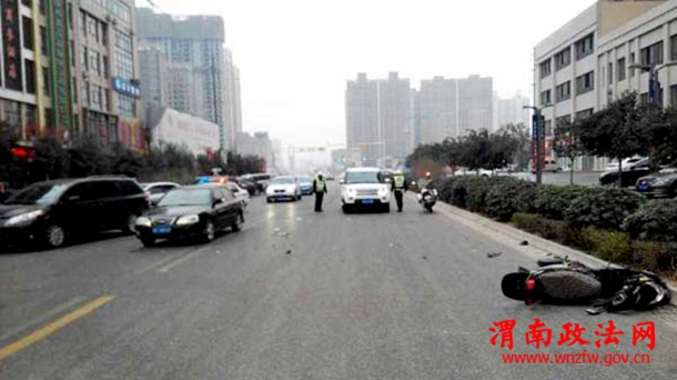 【交通事故猛于虎 且行且珍惜】3月10日,在渭南城区乐天大街与杜化路十字北,一辆由南向北行驶的轿车与从该路段东侧驶出的两轮电动车发生相撞,造成电动车驾驶人受重伤的一起交通事故。临渭交警大队四中队民警发现后立即上前护送伤者前往医院救治,同时另一民警对现场交通进行疏导。通过现场询问驾驶人及围观群众得知,因该路段机动车道被些许车辆当成了临时停车场,乱停乱放的车辆导致肇事车主不能及时躲避,造成此次交通事故的发生。