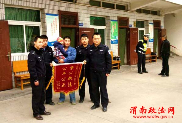 镜头一:这一大早的,警队大门前传来噼里啪啦的响炮声,原来是一位群众携带家属怀着感恩喜悦的心情来到我们临渭交警大队,将上面写有“秉公执法 公平公正”的锦旗送到大队事故预防处理中队民警手中。当事人说:“我连续两次事故都是你们的民警张亮等人给处理的,他们本着“立警为公、执法为民”的理念始终坚持公平公正,有效的维护了我的权益,此次送锦旗前来就是对你们事故预防处理中队民警秉公执法,公平公正的行为表示感谢和支持。”