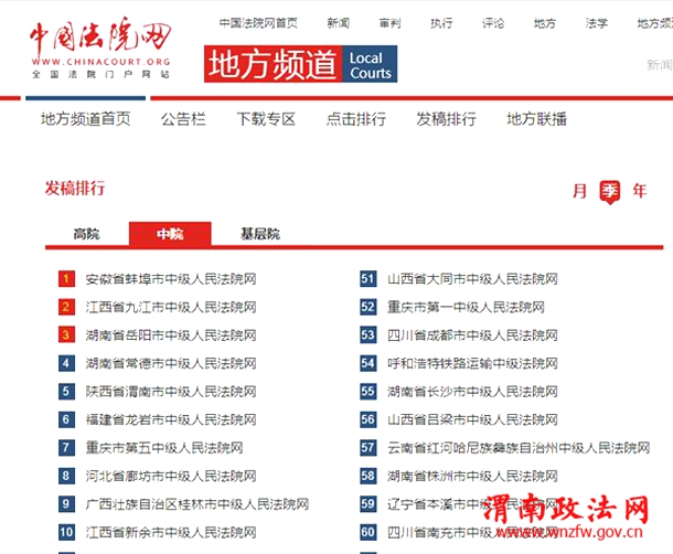 渭南中院发稿量在全国中级法院排名前茅