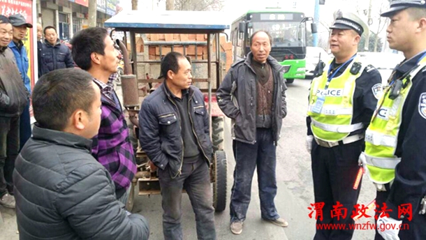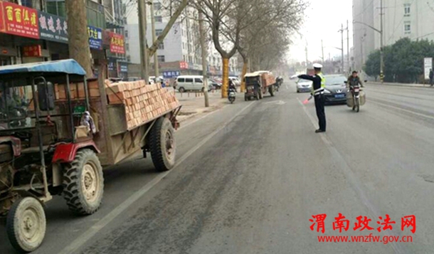 一中队民警,利用周末休息时间,针对辖区过往拖拉机运营特点,集中开展整顿,同时告知拖拉机驾驶人城区白天禁止驶入,并帮他们规划合理的出行路线…