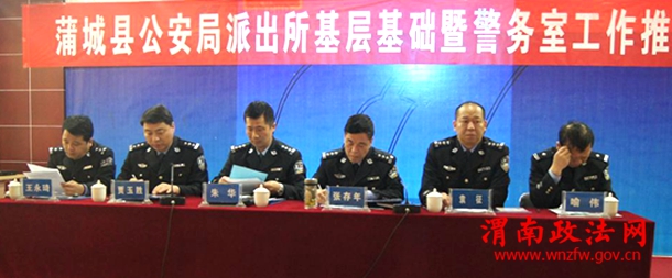 渭南政法网(特约通讯员 耿磊)2015年3月18日,蒲城县公安局组织召开了派出所基层基础暨警务室工作推进会,局长张存年、副局长袁征出席会议,治安大队长以及各派出所长、责任区民警共60余人参加了会议。会议由政委贾玉胜主持。渭南市公安局治安支队政委朱华、户政大队副大队长王永琦莅临指导。