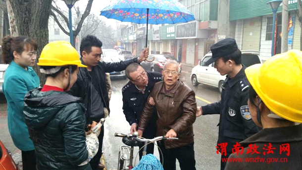 渭南政法网(特约通讯员 曹飞跃 白妮)2015年3月19日上午11时许,华县巡特警大队民警冒雨护送一位七旬老人安全回家。