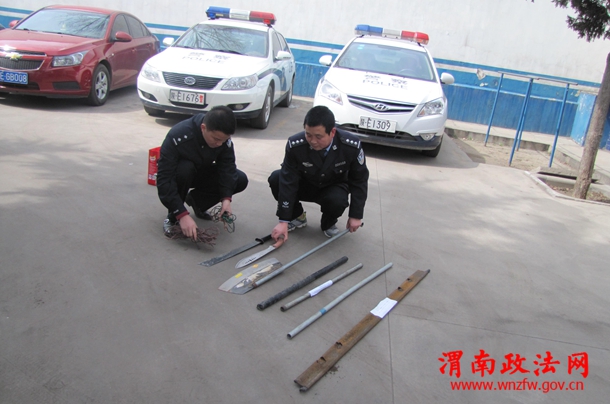渭南政法网(特约通讯员 吝敏)2015年3月11日12时许,在冬日暖阳的照耀下,一把把光亮的刀具刺眼夺目,让人不寒而栗,高阳派出所民警宁佐其、雷军正对管制刀具、雷管、钢管等涉案物品进行清点,这批涉案物品共计雷管2枚、刀具3把、钢管4根,回想起缴获这些物品时的场景,办案民警仍然历历在目,面对手持凶器的犯罪分子和紧张危险的追车场面,办案民警毫不畏惧、正义凛然,让人不禁感慨办案民警的英勇无畏和果敢机智,若不是成功缴获了这些犯罪工具,抓获了这些违法犯罪分子,不知道会给社会带来多大的危害,不知道会伤害多少无辜群众。清点完后,派出所民警乘车将这些物品移交给治安大队进行集中销毁,治安大队民警认真做好物品交接登记工作,治安大队大队长高度赞扬了该所全面深入的治安工作和民警奋不顾身的工作态度。
