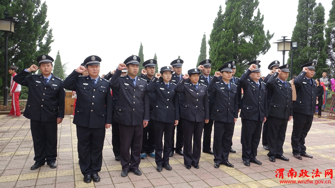 在庄严的渭华起义纪念碑前,全体民警庄严地举起了右手,再一次重温入警誓词。