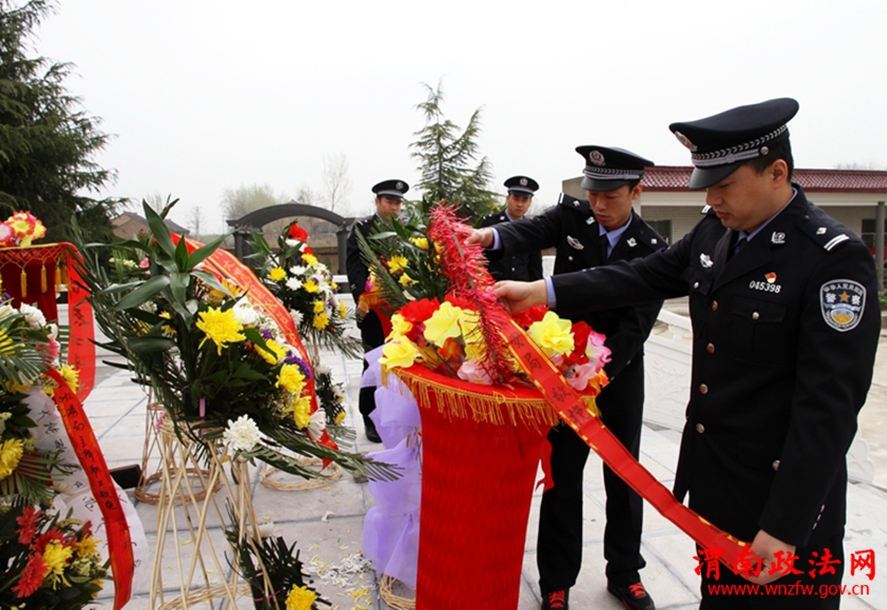 4月2日,大荔公安民警民警们怀着敬仰之情来到烈士陵园,向纪念碑敬献花篮。