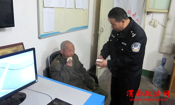 回到派出所已是晚上11点多,民警立即给老人倒了一杯热水,准备了些吃的。待老汉吃饱喝足后,民警问他为什么会走失到华县下庙。据老人称,他到渭南打工时只带了40元钱,谁知干了两天活包工头不要他了,此时身上的钱只能坐车到华县。老人本想到华县投奔亲戚,但一时又联系不上人。老人一路打听到下庙,又饿又乏,实在没办法才寻求帮助。