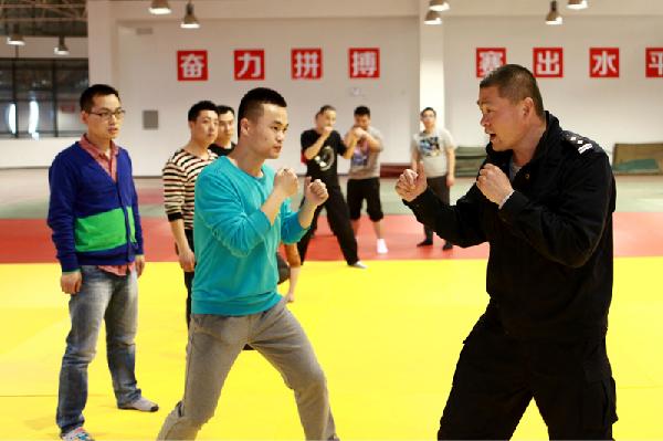 为了有效解决民警实战训练中存在的突出问题,全面提升广大民警警务实战技能和徒手对抗水平,市公安局紧贴实战需求,本着“仗怎么打,兵就怎么练”的思路,筹划组建了公安散打队。4月12日,市公安局机关及临渭、高新、经开分局60多名民警汇聚在渭南市体育中心柔道馆,正式拉开了集中训练的序幕。经过短暂热身后,市局聘请的专业教练向参训队员详细讲解了散打的基本动作要领、人体结构、注意防护的部位以及如何开展训练等问题,重点对每种拳法、腿法的动作姿势、速度、力量和击打部位进行了细致的讲解和标准的示范。在随后的训练中,所有队员都热情高涨、认真投入,一丝不苟地进行了拳法、腿法、步法、格挡等练习,一遍遍地重复练习基本动作。在长达6个小时的训练中,全体队员满头大汗、毫不懈怠,没有一个人喊苦叫累。经过一天的紧张练习,大家初步掌握了散打的基本动作要领,实战对抗能力有了明显提高,纷纷表示“很有收获”,取得了良好的训练效果。