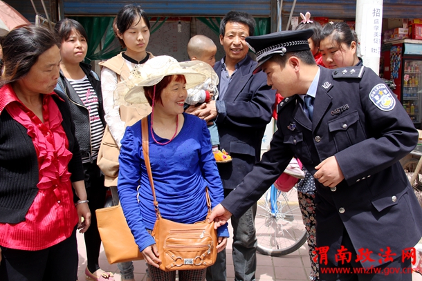 4月16日,富平县公安局庄里派出所民警走上街头传授防盗抢