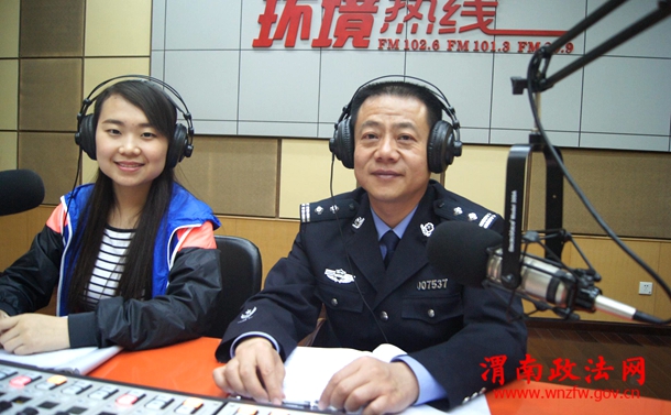 渭南政法网(特约通讯员 李琦)2015年4月16日,蒲城县公安局副局长袁小平走进渭南广播电视台《环境热线》访谈栏目直播室,参加《环境热线》直播节目,与群众在线交流,倾听群众心声,解答群众咨询。
