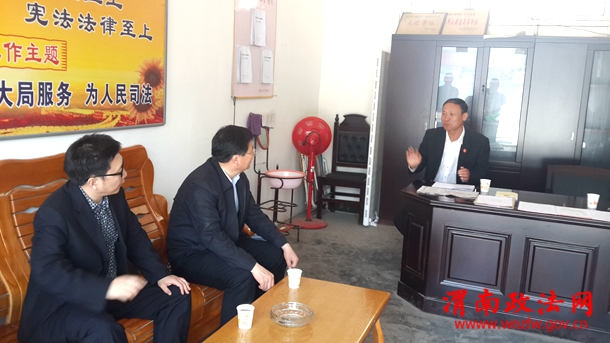 市委政法委副书记、市综治办主任贾重新和坊镇法庭庭长刘广学座谈交流当前农村诉讼案件呈现的新特点和趋势
